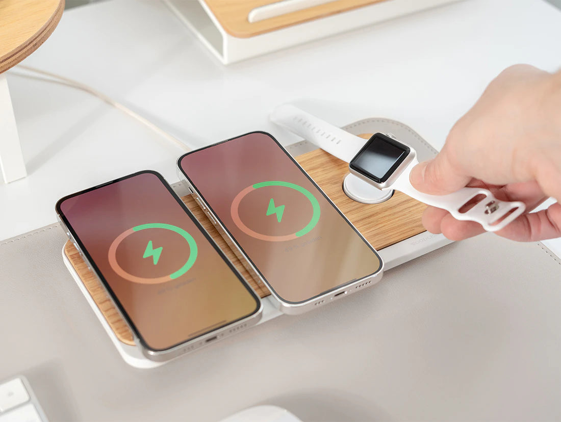 Mit 3 intelligenten Hochleistungs-Ladespulen und einem integrierten Apple Watch Ladegerät sorgt MultiBase Pro für ein neuartiges Ladeerlebnis! Modernste Fast Charging Technologie liefert schnelles Laden mit bis zu 15W!