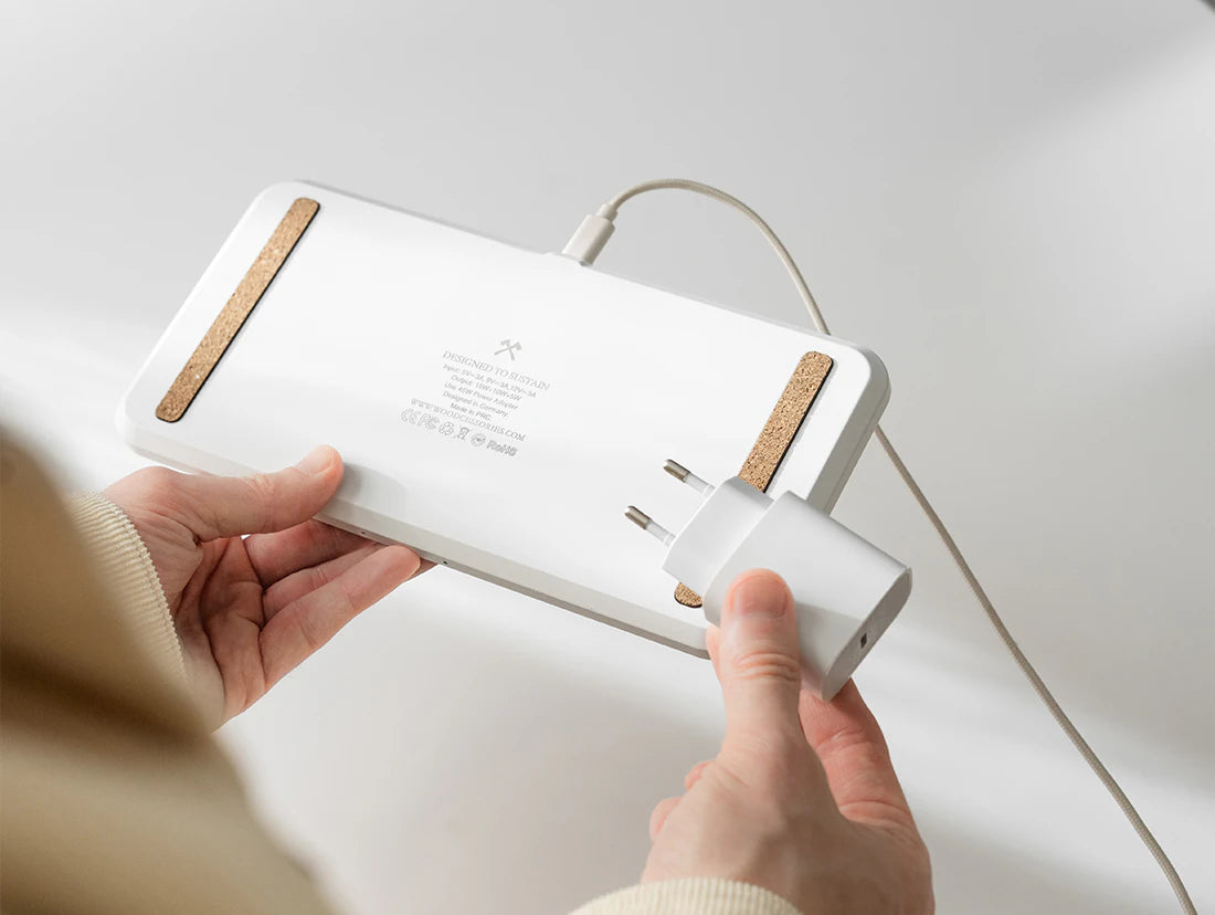Uns war es wichtig, auf das Feedback unserer Kunden zu hören. Daher leuchten die Kontrollleuchten auf, sobald ein Gerät aufgelegt wird und dimmen sich anschließend wieder ab. Das LED-Licht dient der Kontrolle, sodass du jederzeit sicher sein kannst, das dein Gerät geladen wird. Zudem sieht es super hochwertig aus und spiegelt die klare, minimalistische Designsprache wieder!