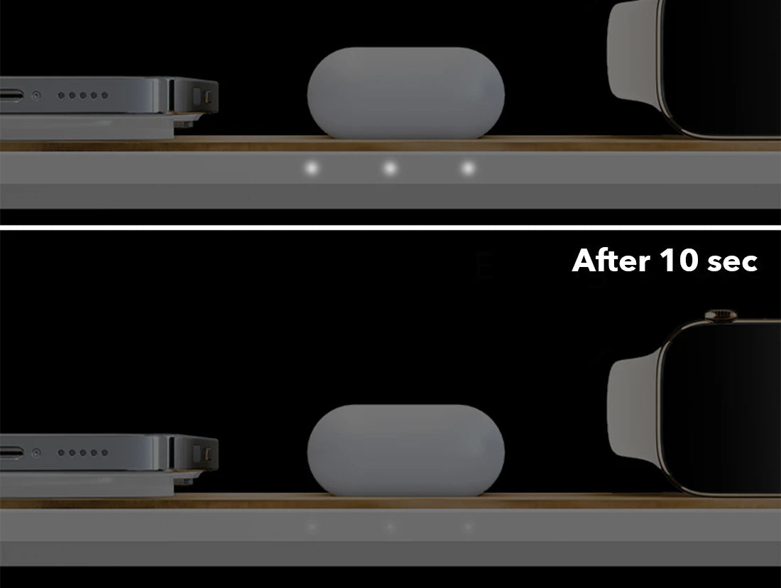 Aufgrund von Kundenfeedback haben wir zarte, weiße LED-Anzeigen entwickelt, die aufleuchten, wenn ein Gerät auf die Ladefläche gelegt wird, sich aber automatisch abdunkeln. Perfekt für jeden Nachttisch!