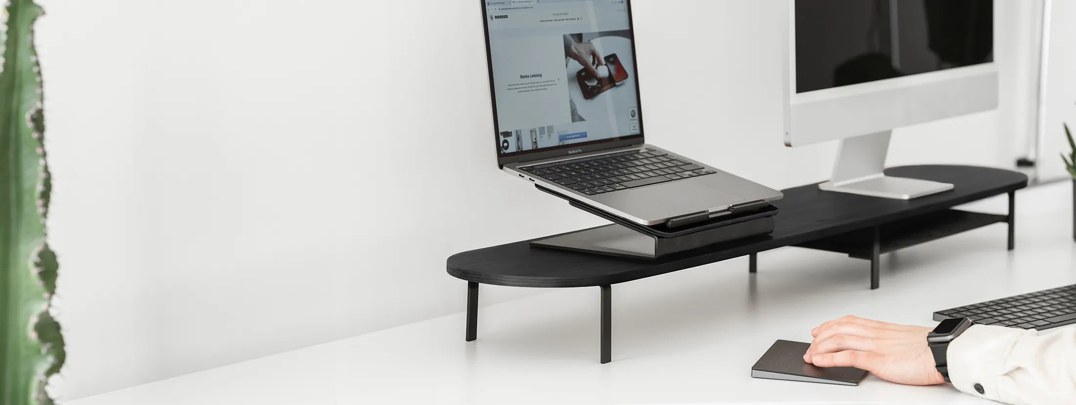 Dank der smarten Bauweise unserer Monitorerhöhungen kannst du deinen Arbeitsplatz nach deinen Bedürfnissen gestalten und verzichtest dabei nicht auf Design und Ergonomie.