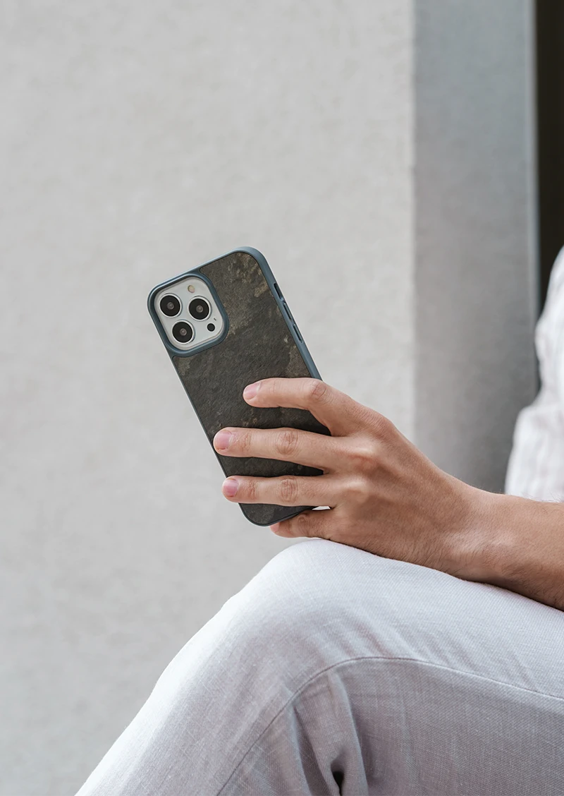 Die einzigartige iPhone 11 Pro Hülle aus handselektiertem Echtstein und recyceltem Silikon schützt dein iPhone gegen Stürze aus bis zu 2 m Höhe! Deine iPhone Stein Hülle ist ein echtes Stück Natur und kommt mit ganz individueller Maserung.