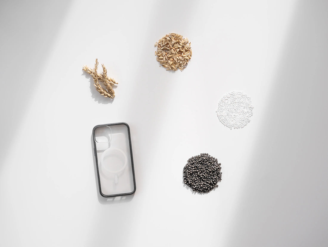 In aufwendigen Prozessen härten wir Pflanzenstärke, Weizen und Stroh und kreieren daraus dein sturzsicheres Clear Case. Das Beste: 68% der Materialien werden aus einem Upcycling Kreislauf gewonnen!