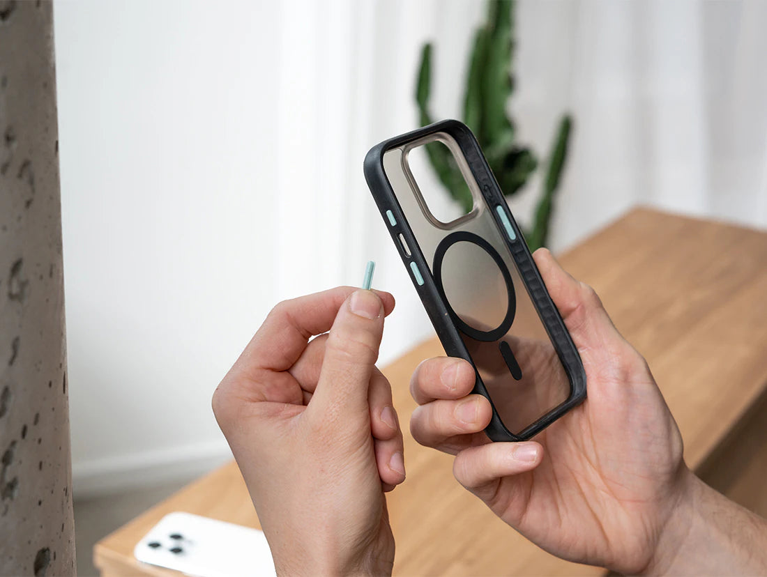 Zusammen mit deinem neuen Clear Case erhältst du zwei Paar austauschbare Knöpfe in zwei verschiedenen Farben, die du frei nach deinen Wünschen in dein Case einsetzen kannst. Diese Knöpfe für deine Lautstärkeregler und Power Button lassen sich ganz einfach rein und wieder herausklicken, aber sitzen gleichzeitig fest im Rahmen deines Cases. So kannst du deine Hülle individuell gestalten und zusätzliche Farbakzente setzen!