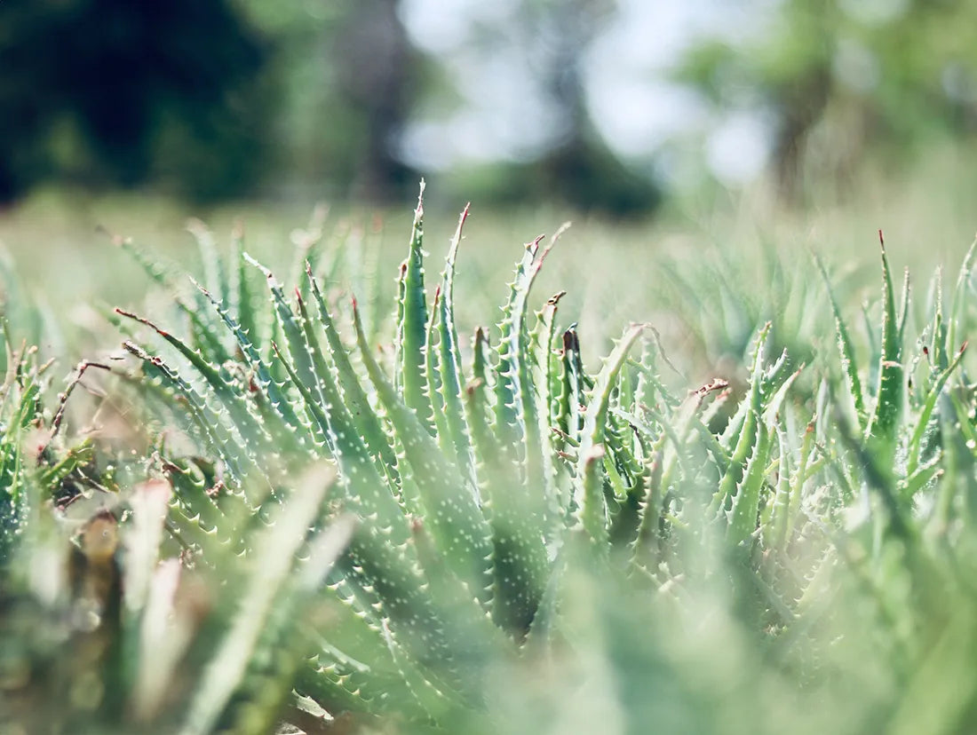 Die Aloe-Vera-Fasern, die wir für unsere Produktion verwenden, entstehen als Nebenprodukt in der Kosmetikindustrie. Nachdem der Saft der Pflanze extrahiert wurde, nehmen wir die übrig gebliebenen, getrockneten Blätter und nutzen den "Abfall", um etwas Neues zu schaffen. Dies führt im Vergleich zur Herstellung oder Ernte eines neuen Materials zu großen Umwelteinsparungen in Bezug auf Ressourcenverbrauch, Landnutzung und Energie. (Die Blätter werden zu einem sehr feinen Pulver gemahlen und mit ca. 30 % Post-Consumer-Polyurethan gemischt. Um ein stabiles Ledermaterial zu erhalten, wird dieses gemischte Material auf eine reißfeste Rolle aus pflanzlichem Gewebe aufgebracht. Die Rollen werden erhitzt, um ein witterungsbeständiges und langlebiges, innovatives Gewebe mit einer reichhaltigen Lederstruktur herzustellen.