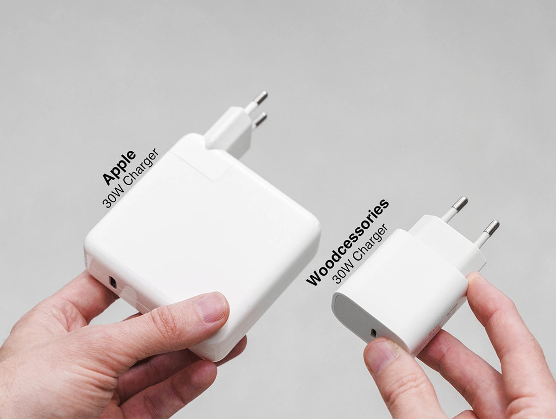 Nur mit dem Schnellladegerät kannst du echtes Fast Charging erleben. Für unseren Wireless Charger aus Holz benötigst du ein 30W Netzteil, um die Leistung von 15W zu erreichen. Auch für unser 3 in 1 Ladegerät benötigst du dieses Netzteil, um insgesamt auf 30W Leistung zu kommen und die versprochenen 3 Geräte gleichzeitig laden zu können.