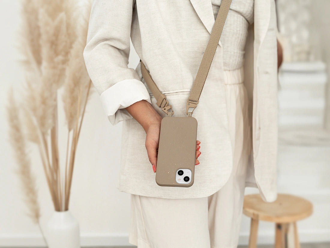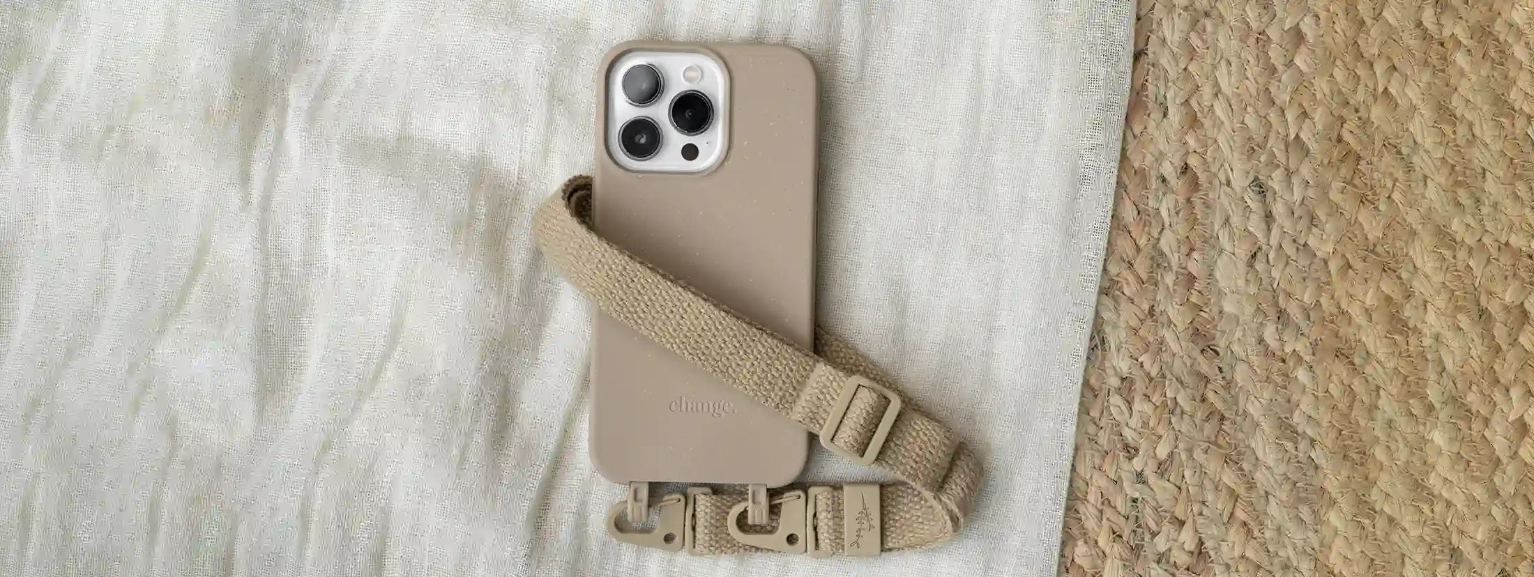 Unsere modularen Handyhüllen geben dir die Möglichkeit eine normale iPhone Hülle zu nutzen und in Sekundenschnelle diese in eine praktische Handykette umzuwandeln. Mit den abnehmbaren Kordeln kannst du unendliche Kombinationen tragen und an jedes Outfit anpassen. Zudem sind unsere austauschbaren Kordeln schlichtweg ausgereifter als andere Systeme. Während andere Kordeln immer wieder aus der Handykette fallen, lassen sich unsere Handykordeln richtig reinklicken, sodass sie sogar problemlos umher geschwungen werden können, ohne wieder herauszufallen. Nicht zuletzt bekommst du bei uns die nachhaltige und ressourcenschonende Alternative zu herkömmlichen Plastik Cases! Eines unserer wichtigsten Ziele ist es: so viel Plastik wie nur möglich in unseren Produkten, Produktion aber auch im Alltag zu vermeiden! Mit unseren Marken Woodcessories und Change sind wir auf dem richtigen Weg schon bald komplett plastikfrei zu werden! So bestehen auch unsere Umverpackungen zu mindestens 99% aus wiederverwertetem Altpapier und schadstoffarmer Sojabohnen Tinte, welche sie komplett umweltverträglich und kompostierbar machen. Mit unserer Aufforstungskampagne förderst du zudem eine wichtige Klima Mission, indem für jede verkaufte Handykette ein Baum gepflanzt wird.