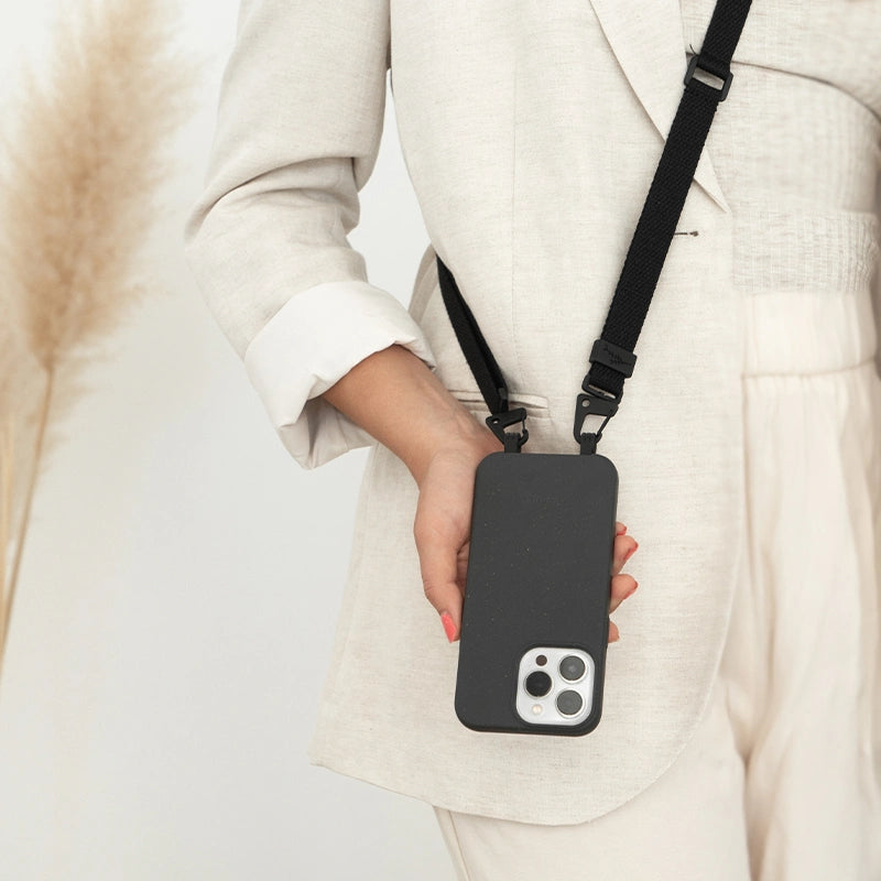 Da unsere Handyketten Kordeln nur aus recyceltem Stoffen und keinem Bio-Material bestehen, sind sie leider nicht biologisch abbaubar. In unseren vielen Testläufen mussten wir feststellen, dass das pflanzliche Material unseren Ansprüchen an Tragekraft und Widerständigkeit nicht gerecht wurden und der Haken der Kordel oft nachgegeben hat. Um sicher zu gehen, dass die Kordel sich nicht von deinem Case löst, setzen wir lieber auf robusteres Material und verwenden daher recycelten Kunststoff. Zwar lässt sich so deine Handykordel nicht einfach kompostieren, aber dafür können wir das Material für unsere nächste Produktionen recyceln und wiederverwenden.