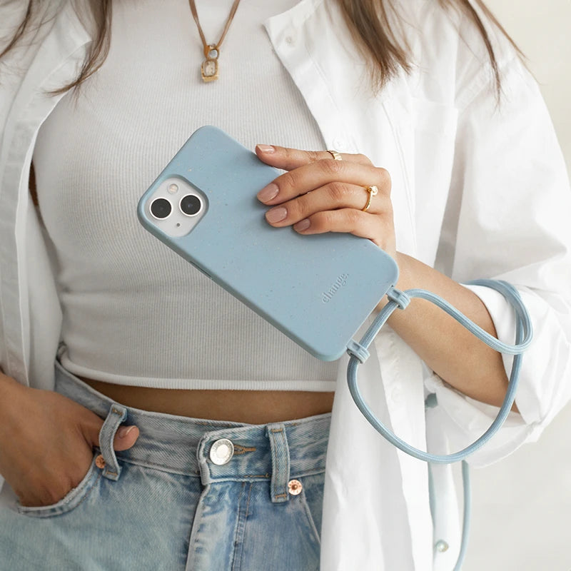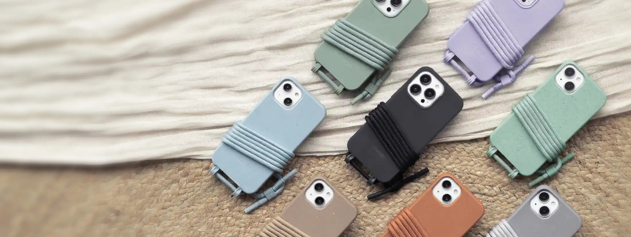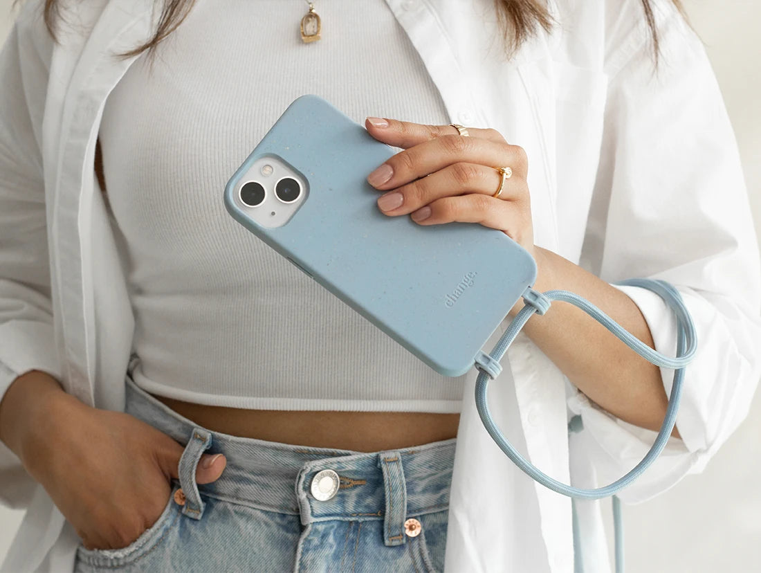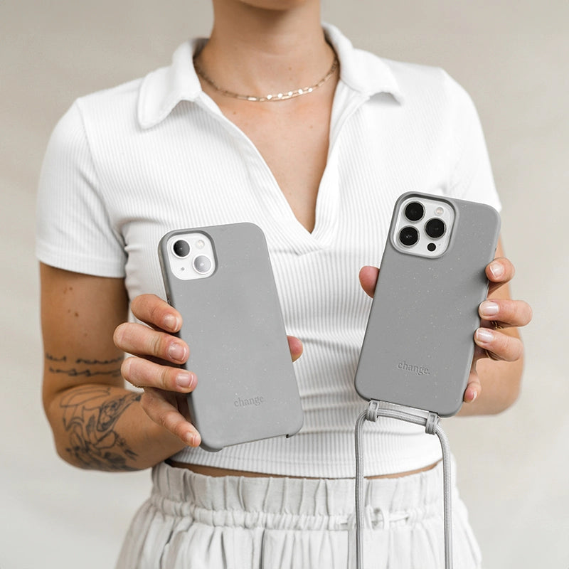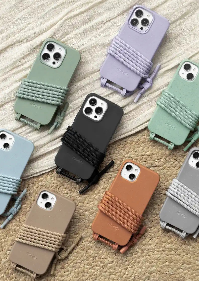 Unsere modularen Handyhüllen geben dir die Möglichkeit eine normale iPhone Hülle zu nutzen und in Sekundenschnelle diese in eine praktische Handykette umzuwandeln. Mit den abnehmbaren Kordeln kannst du unendliche Kombinationen tragen und an jedes Outfit anpassen. Zudem sind unsere austauschbaren Kordeln schlichtweg ausgereifter als andere Systeme. Während andere Kordeln immer wieder aus der Handykette fallen, lassen sich unsere Handykordeln richtig reinklicken, sodass sie sogar problemlos umher geschwungen werden können, ohne wieder herauszufallen. Nicht zuletzt bekommst du bei uns die nachhaltige und ressourcenschonende Alternative zu herkömmlichen Plastik Cases! Eines unserer wichtigsten Ziele ist es: so viel Plastik wie nur möglich in unseren Produkten, Produktion aber auch im Alltag zu vermeiden! Mit unseren Marken Woodcessories und Change sind wir auf dem richtigen Weg schon bald komplett plastikfrei zu werden! So bestehen auch unsere Umverpackungen zu mindestens 99% aus wiederverwertetem Altpapier und schadstoffarmer Sojabohnen Tinte, welche sie komplett umweltverträglich und kompostierbar machen. Mit unserer Aufforstungskampagne förderst du zudem eine wichtige Klima Mission, indem für jede verkaufte Handykette ein Baum gepflanzt wird.