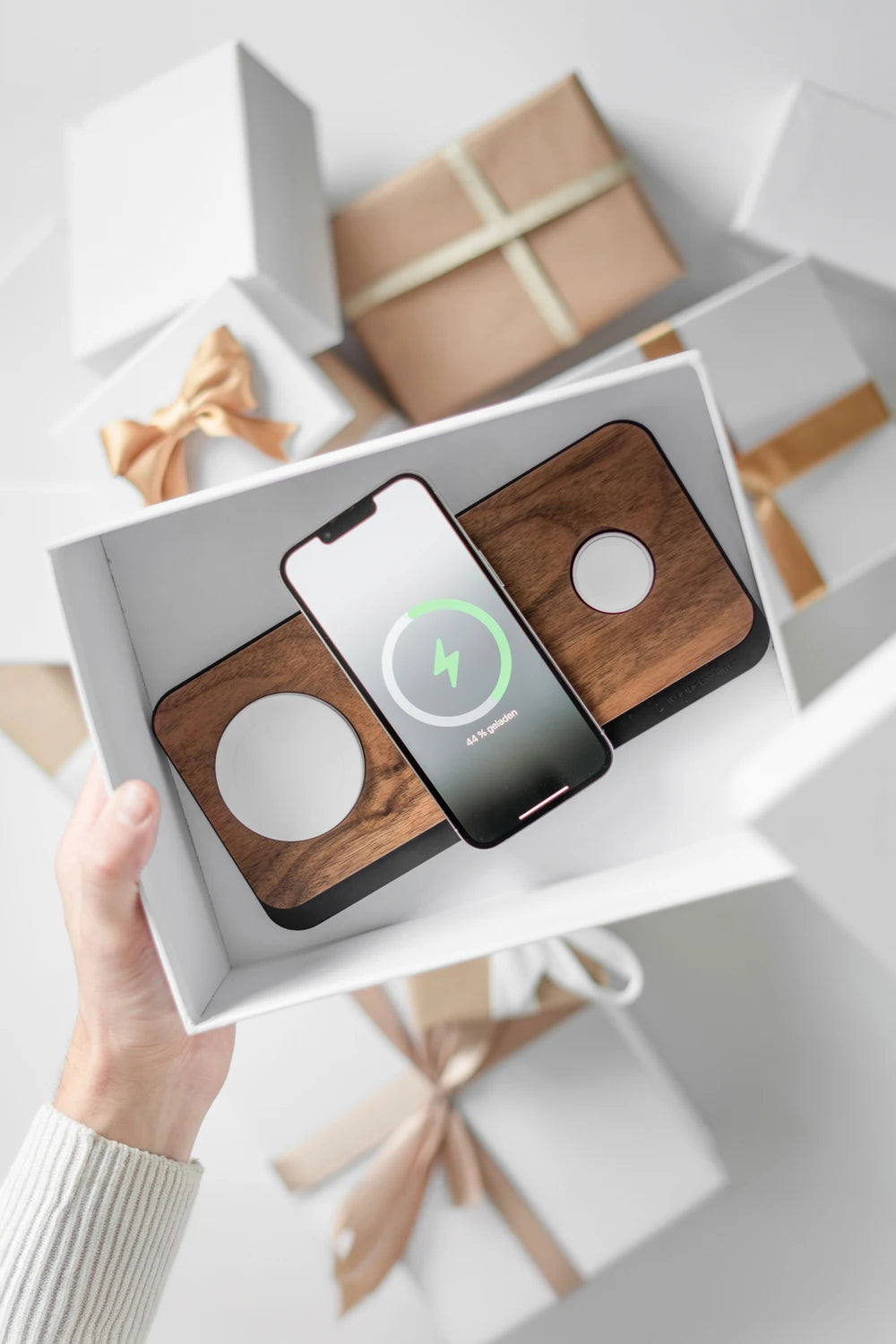 Entdecke jetzt unsere Auswahl an induktiven Ladestationen aus Holz und erlebe das ultimative Ladenerlebnis für dein iPhone und andere kompatible Geräte!