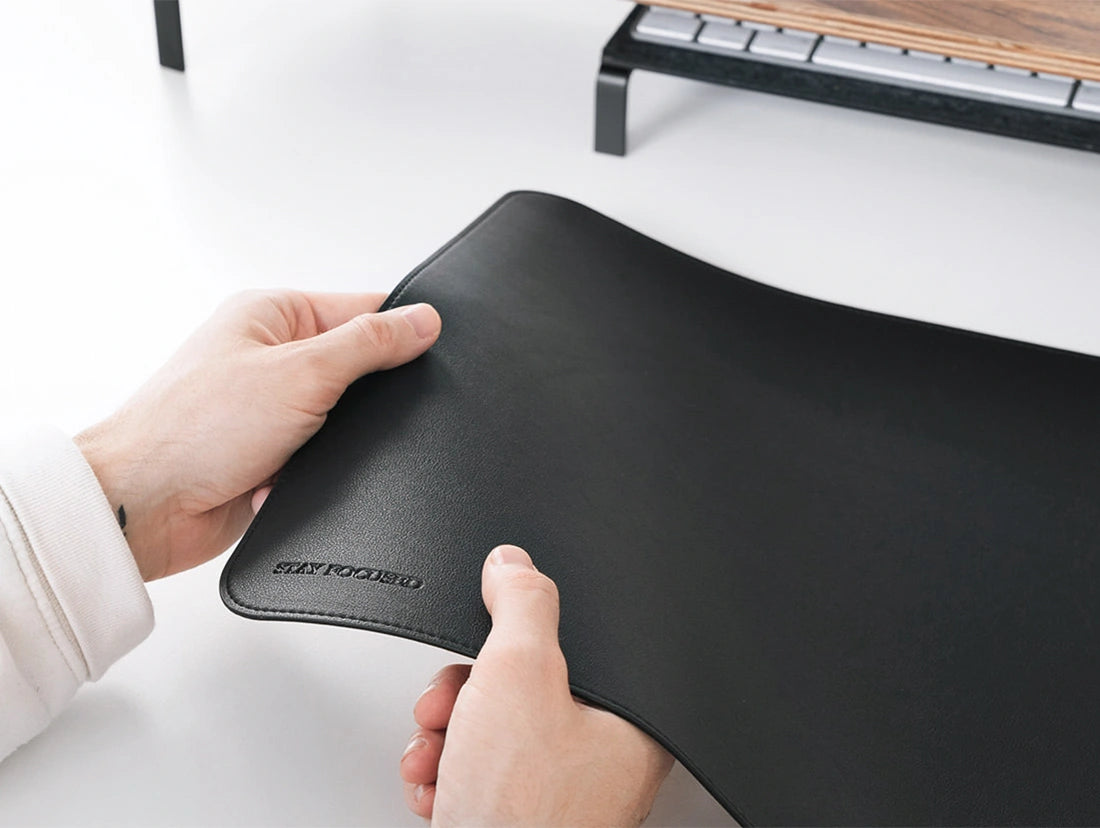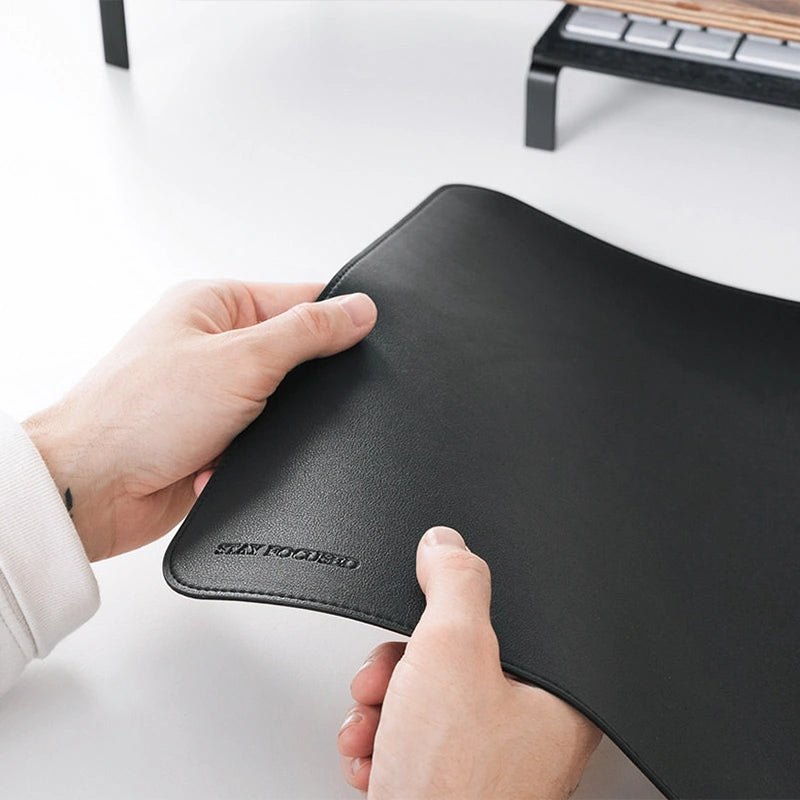 Unsere Premium Schreibtischauflage im tiefen Schwarz kommt im klassischen Look und verschönert jedes Schreibtisch Setup. Erlebe ein organisiertes Arbeitsumfeld, eine verbesserte Bedienung deiner Maus und verzichte auf lästige Fingerabdrücke!