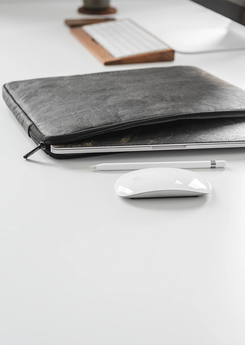 Unser MacBook Sleeve wird aus deutschem Texon Vogue® Kraftpapier hergestellt, das zu 100 % aus natürlichem Holzzellstoff besteht. Dieses nachhaltige Material ist sowohl FSC®- als auch OEKO-TEX®-zertifiziert, wodurch wir sowohl Umweltfreundlichkeit als auch Schadstofffreiheit gewährleistet können. Es ist außerdem sehr strapazierfähig, wasserfest und kann auch längerer Outdoor Verwendung standhalten. Die hochwertige Lederoptik und -haptik macht es zur perfekten grünen Alternative.