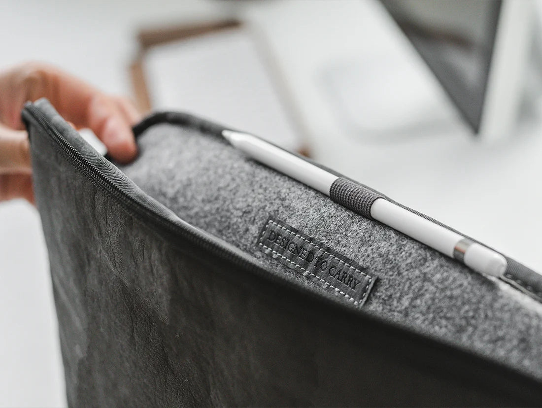 Langlebiger Filzstoff aus recyceltem PET Flaschen schützt dein MacBook sanft vor Kratzern & reduziert nebenbei die Produktion von Plastikmüll und Mikroplastik!