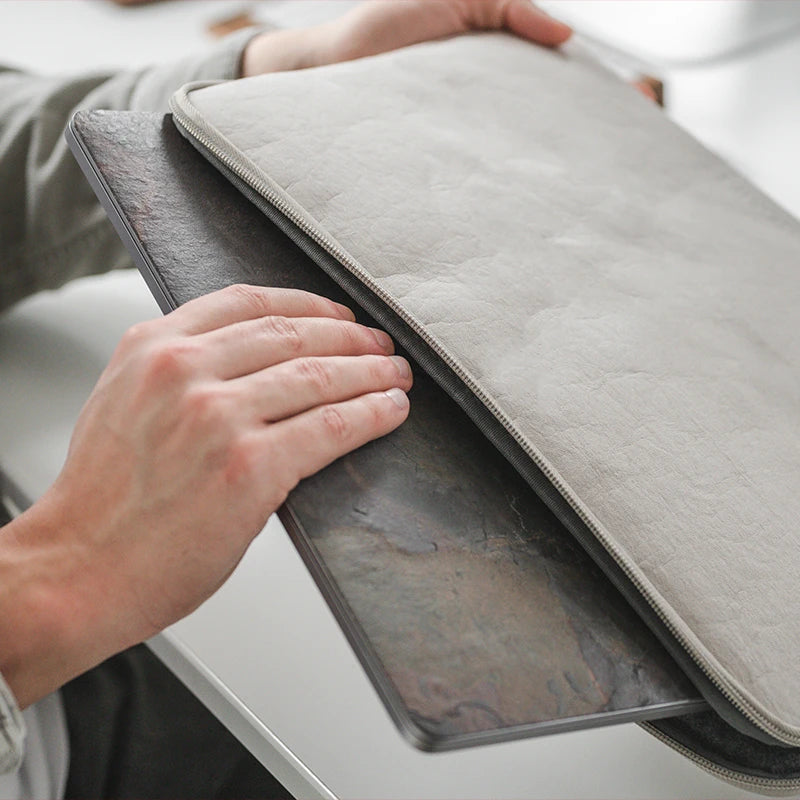 Hochwertiges Laptop Sleeve aus wasserabweisendem, strapazierfähigem Kraftpapier. Zuverlässiger Schutz gegen Wind & Wetter!